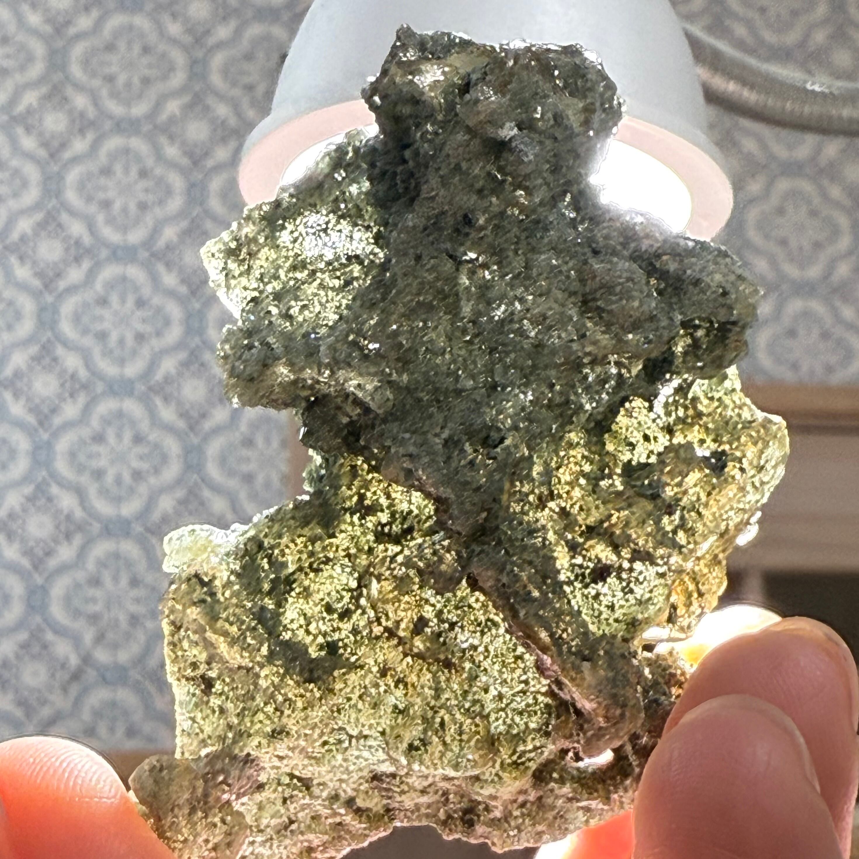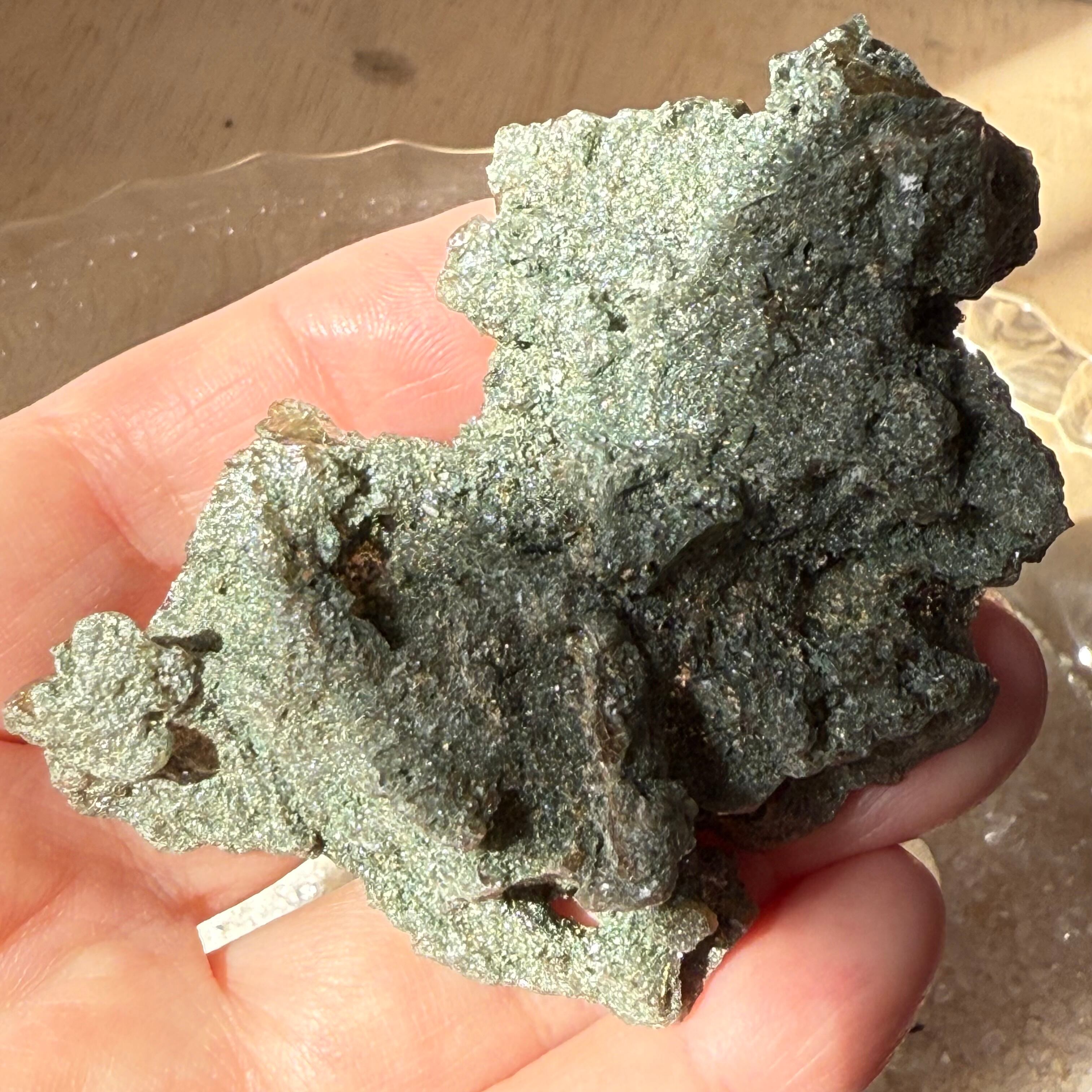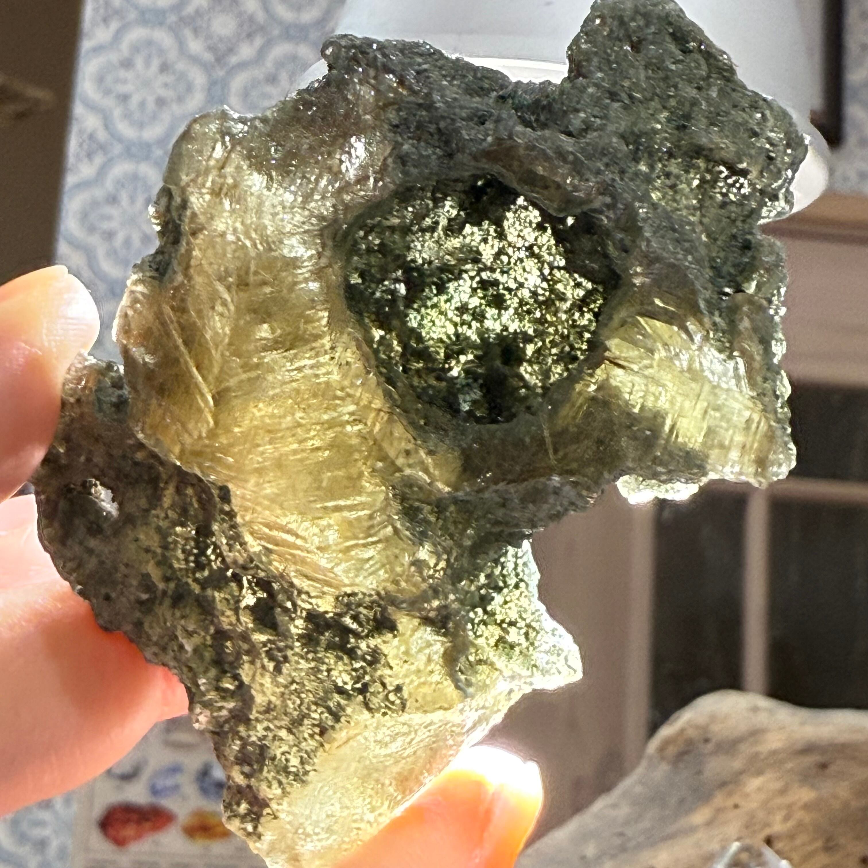 クレーターのようなポッカリとした穴をルーペで覗くとルチルの小さな結晶と